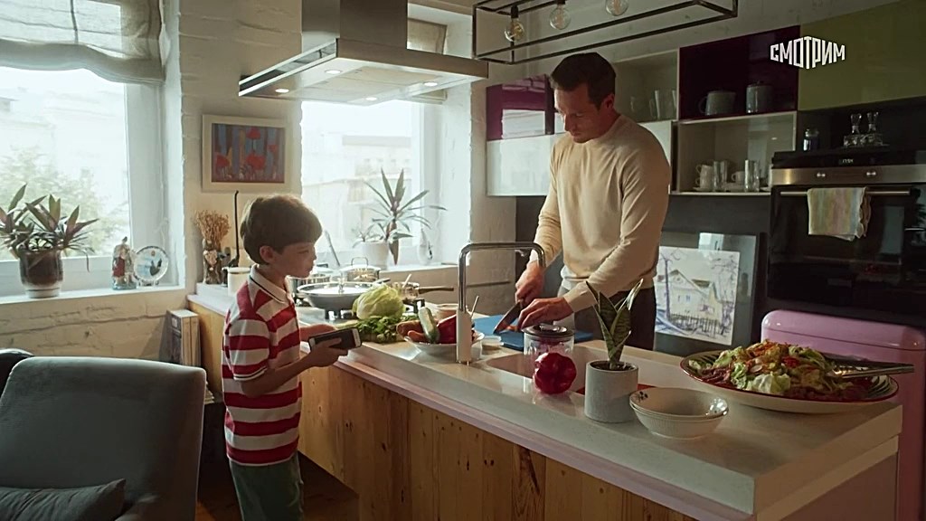 В ролях: Олег Назаров, Кристина Бродская, Елена Цыплакова, Екатерина Вуличенко, Юлия Галкина, Янина Соколовская, Ирина Чериченко, Анна Роскошная, Рамаз Чиаурели, Виталий Панин О фильме: Максим, в прошлом талантливый повар, готовится к годовщине свадьбы с женой Ларисой. Однако Лариса возвращается из очередной командировки с неприятной новостью: она влюбилась в другого, собирается развестись и уехать с их девятилетним сыном Антоном в другой город. Максим не готов терять сына. Однако для получения опеки ему необходимы постоянная работа и собственная квартира. Ни того, ни другого у него нет: чтобы заботиться об Антоне, он работал удаленно, свою квартиру продал, а деньги вложил в бизнес жены. Максим вынужден теперь полностью изменить свою жизнь. Он устраивается шеф-поваром в свой бывший ресторан и переезжает в новую квартиру – по соседству сразу с несколькими очаровательными и незамужними женщинами…